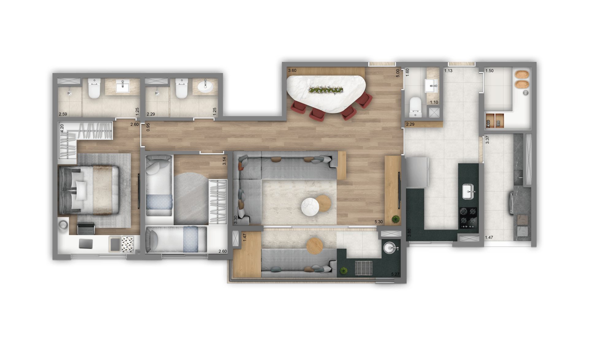 A privacidade que você queria com a exclusividade que você merece, com apartamentos de 90 e 116 m².