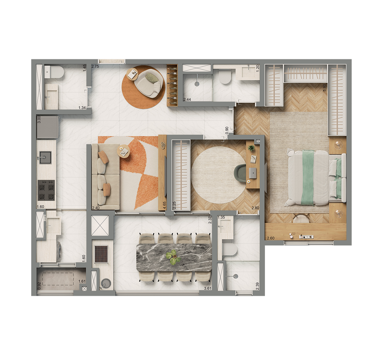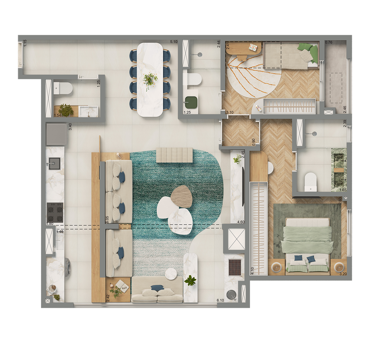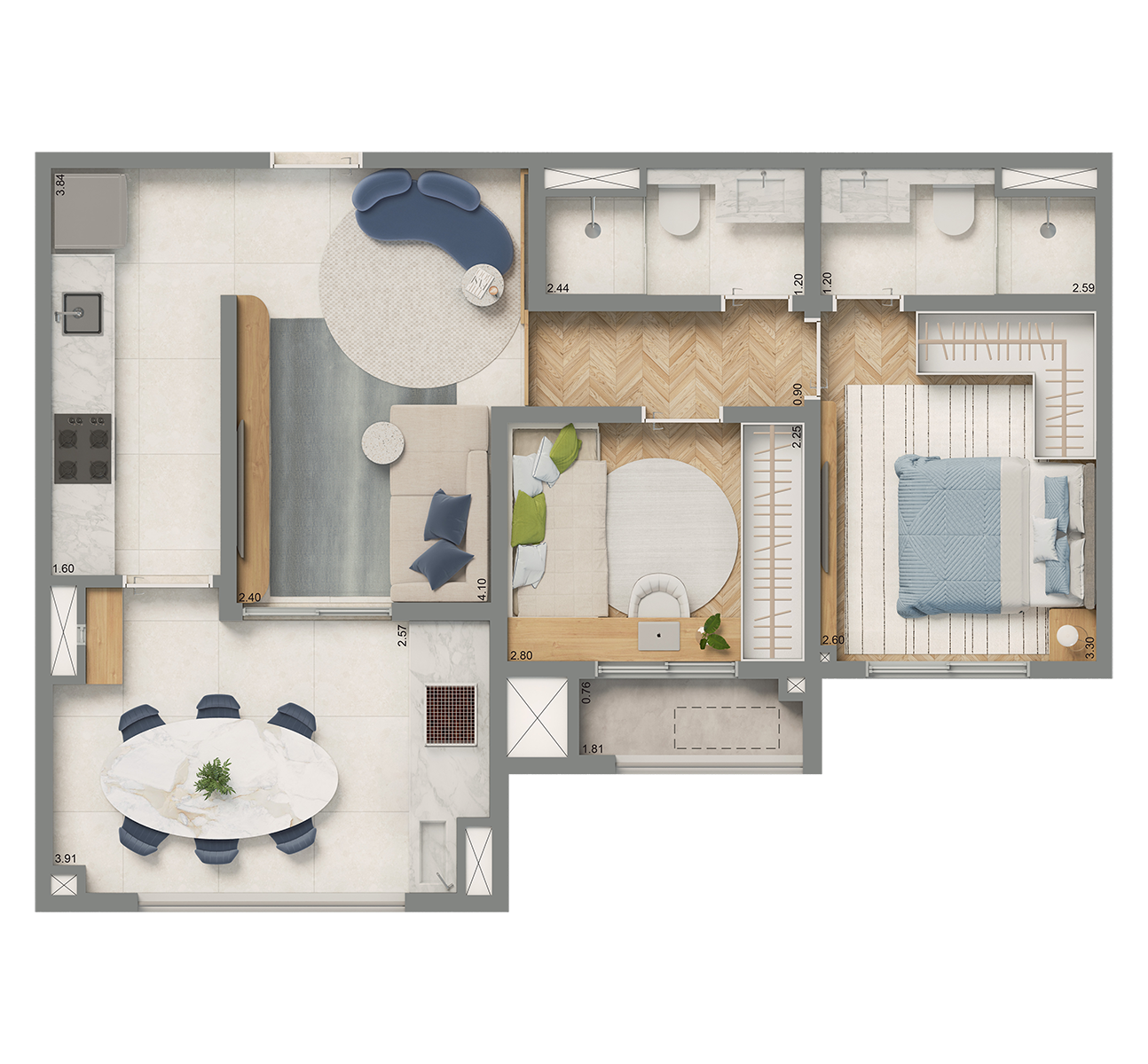 Apartamentos de 60 a 87m²