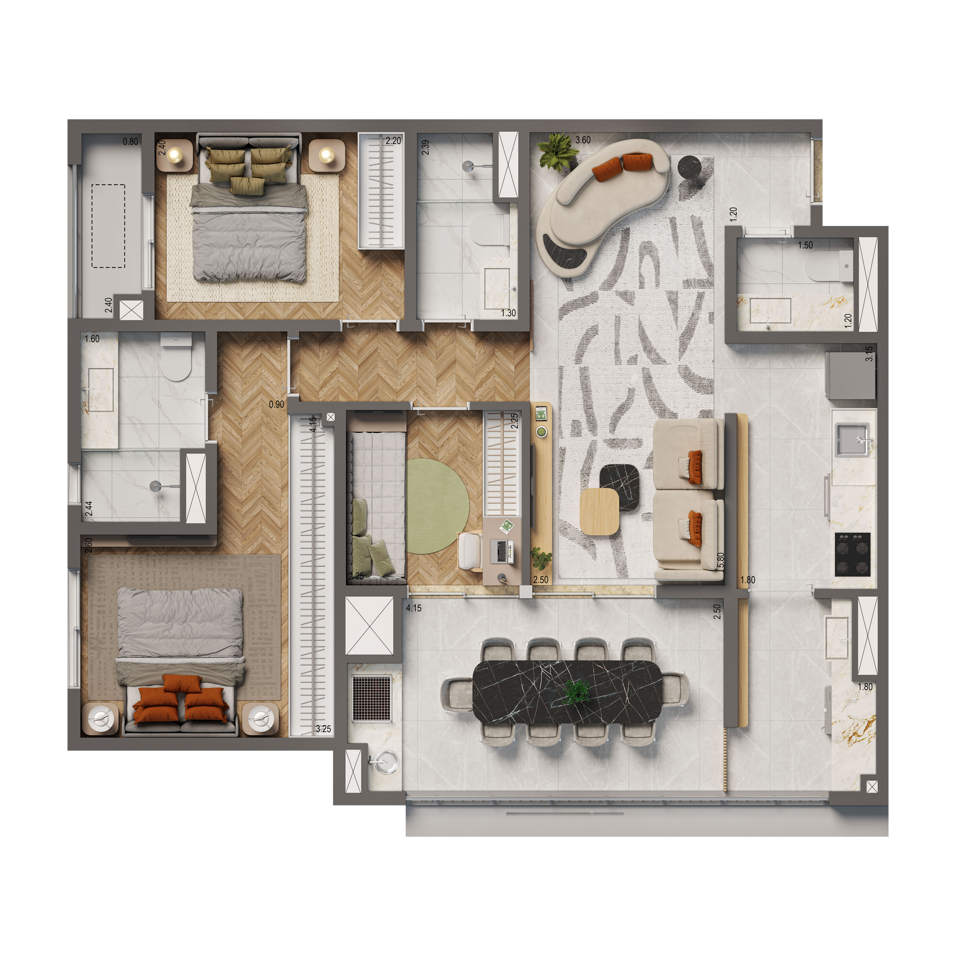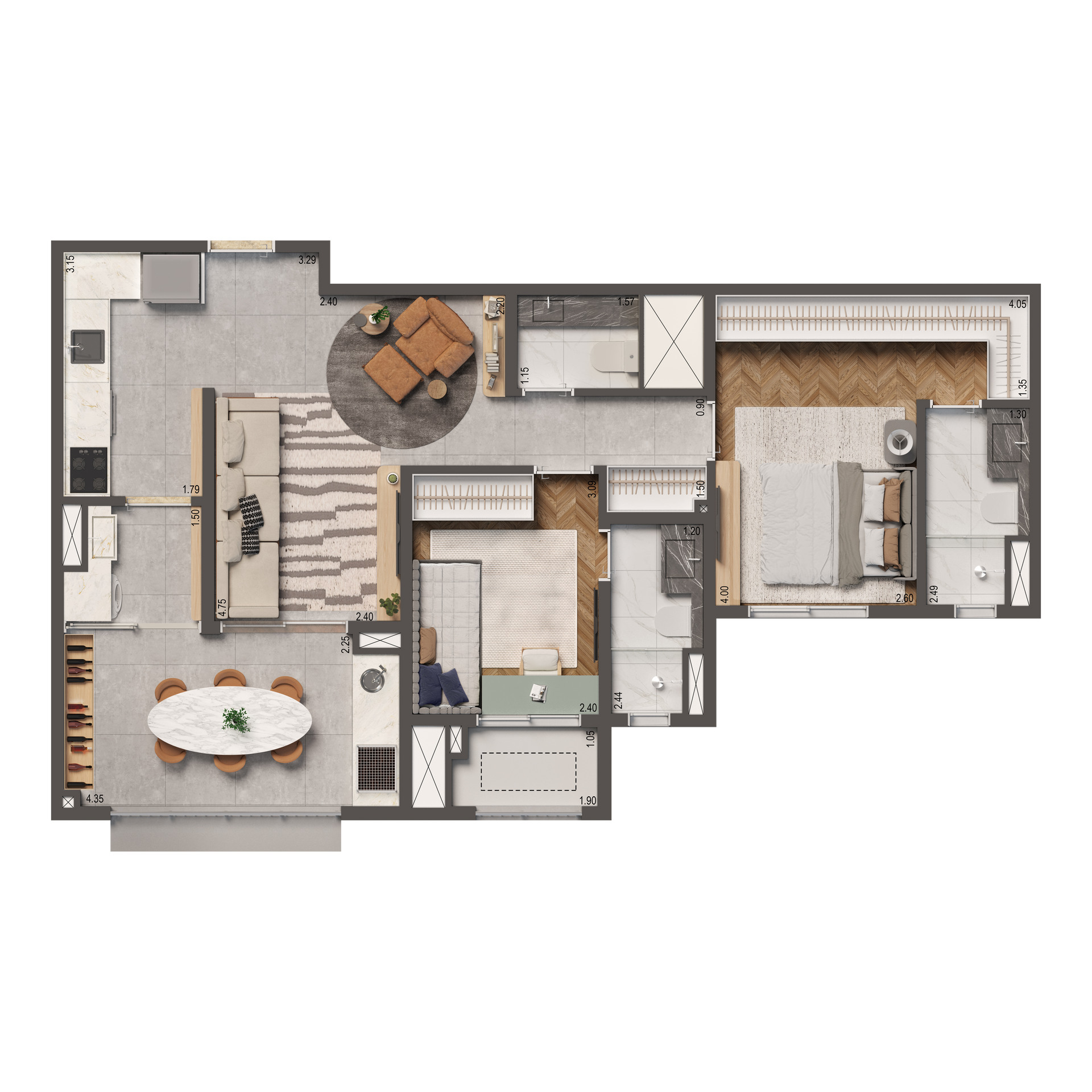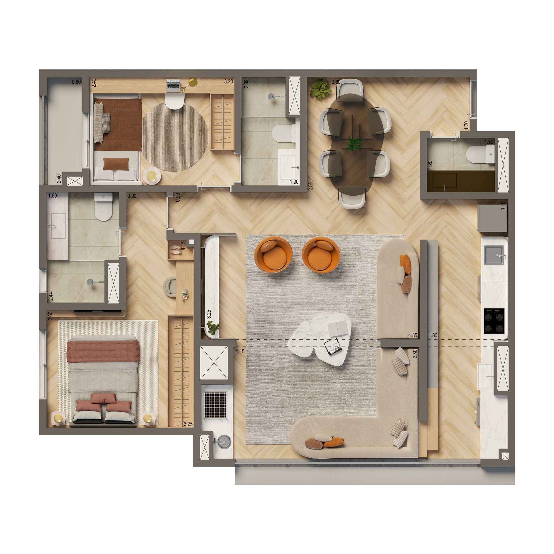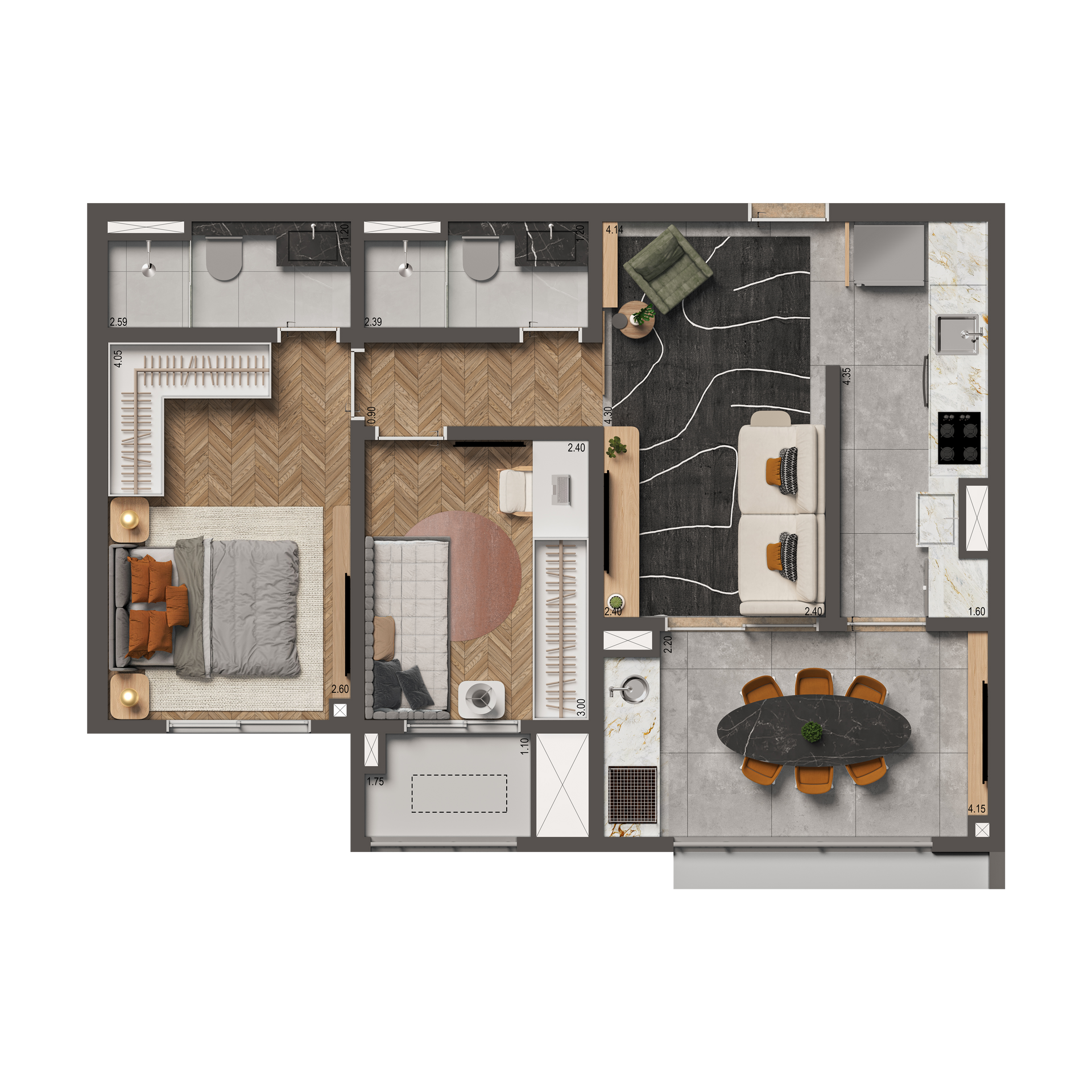 62 a 86m² | 2 a 3 dorms | 1 e 2 suítes | 1 vaga