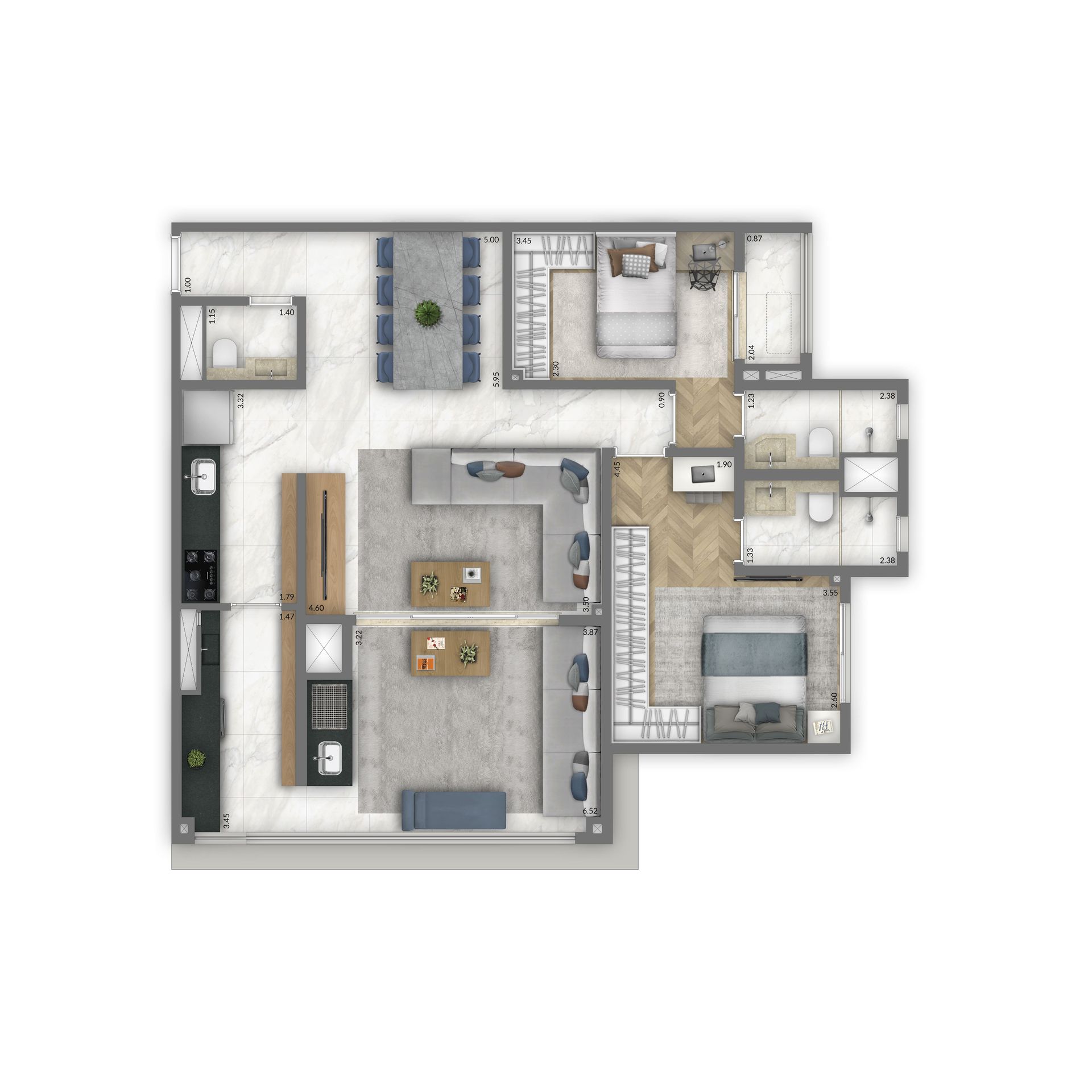 - Apartamentos de 74 a 115m²