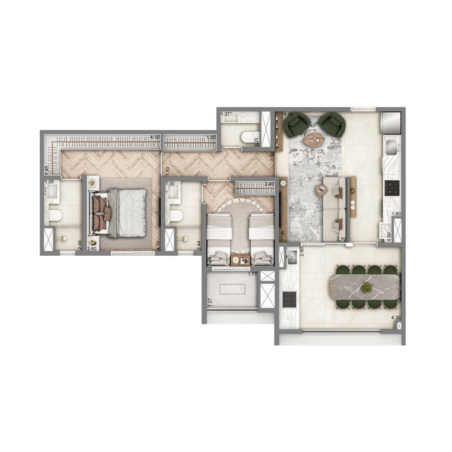 76 a 140m² | 2 a 4 dorms. | até 3 suítes